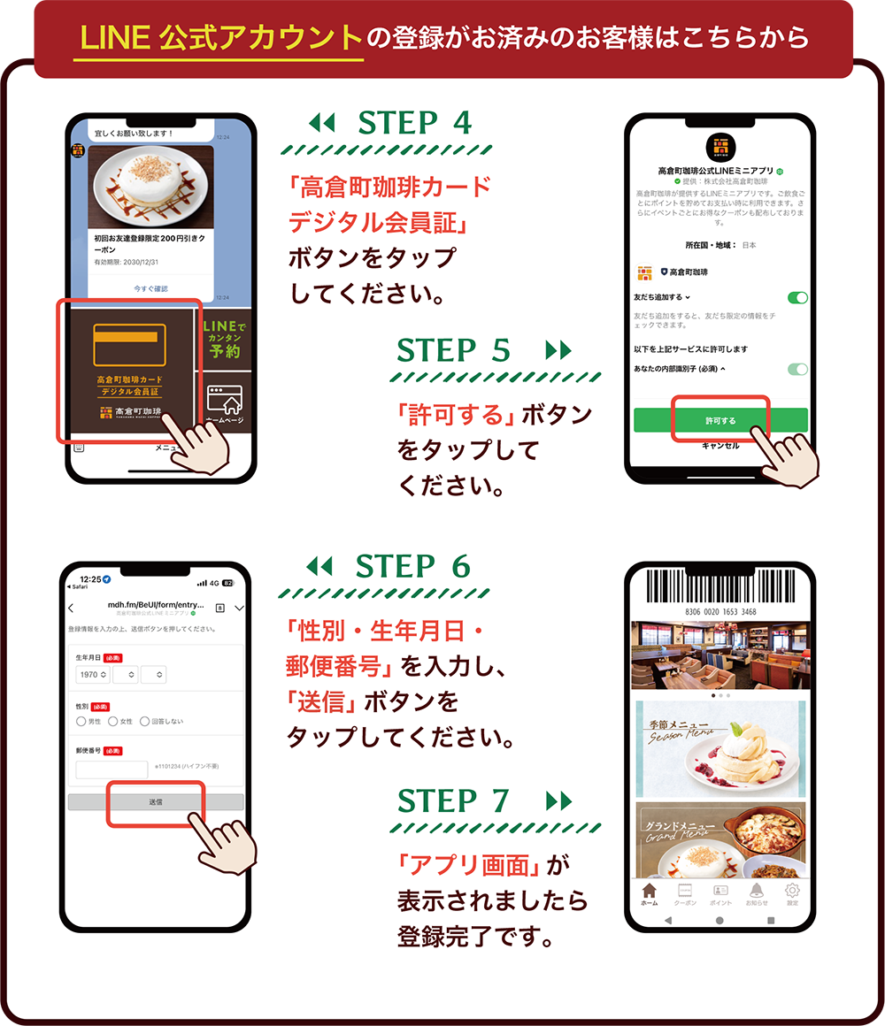 - 高倉町珈琲のLINE公式アカウントからの会員登録が便利です。